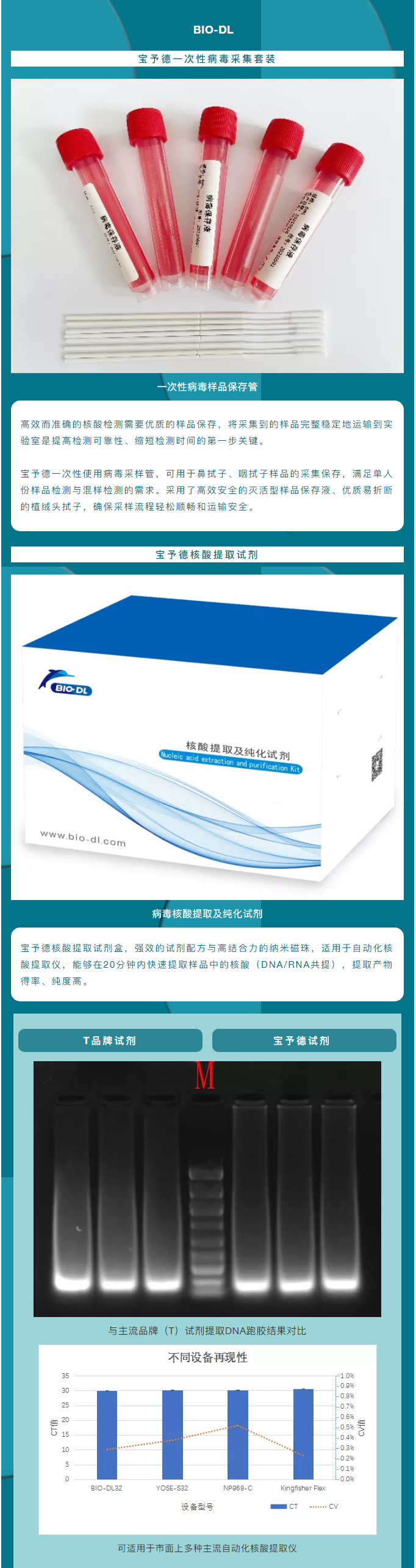 寶予德一次性使用病毒采樣管,可用于鼻拭子、咽拭子樣品的采集保存,滿足單人份樣品檢測與混樣檢測的需求。